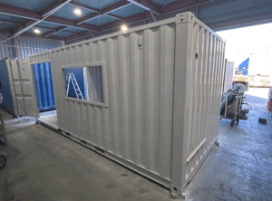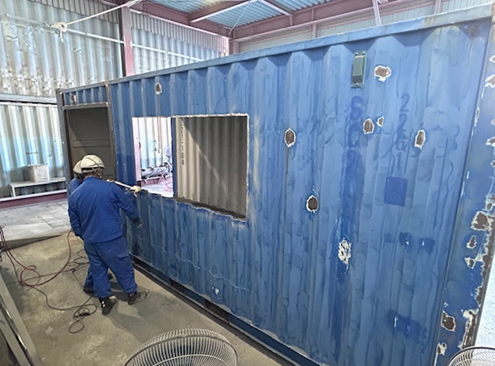 今回、海上用コンテナで改造事例(扉・窓の開口)を行っており、
