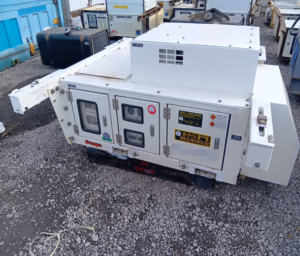 今回は、北海道で特に使用頻度の高い発電機(MG)についてご紹介いたします。 発電機(Motor Generator)は、リーファーコンテナの冷凍機へ電力を供給し、安定稼働させるための機材です。 北海道では、コンテナをシャーシに積載して輸送するケースが多く、発電機は欠かせない設備となっています。 弊社では、お客様に安心してご使用いただけるよう、年1回の定期点検を実施しております。 ①~③の画像は、定期点検中の発電機(アンダーマウントタイプ)です。 ① アンダーマウントタイプ(コンテナシャーシの下部に装着します)② 発電機のカバーを外して点検作業を行います(エアフィルター交換作業の様子)